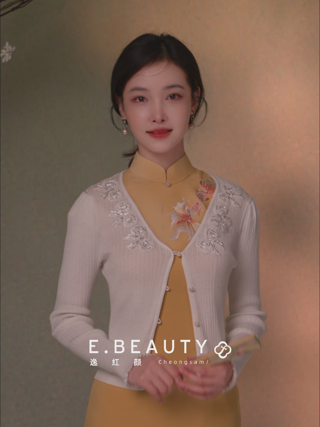 Goose Yellow | Embroidered Knit Qipao Cardigan(诺洳)