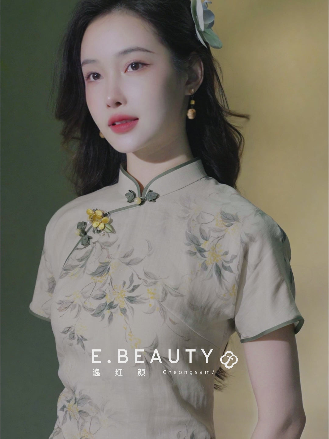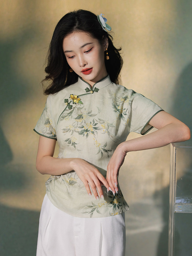 light green|Osmanthus Print Qipao top(沁寒)